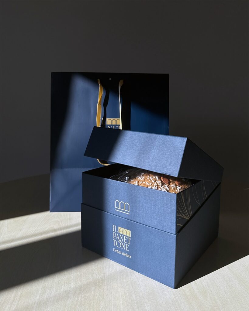 Un esempio concreto del processo Gpack è il progetto sviluppato per Bluh Furore, ristorante stellato diretto dallo chef Vincenzo Russo all’interno del magnifico hotel 5 Stelle Furore Grand Hotel, brand che ha lanciato una linea di panettoni premium e che necessitava di un packaging elegante, distintivo e tecnicamente complesso.